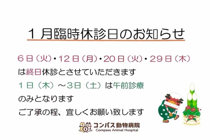 14日(日)・30日(火)~1月3日(土)は午前診療のみとな...